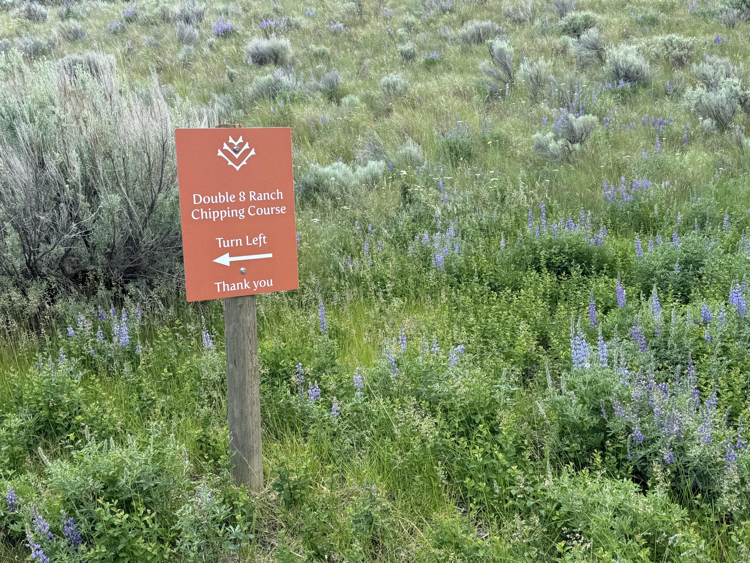 Finding ourselves with time to kill before our round, we warmed up on the pitching course, Double 8 Ranch. It gives you a preview of what’s next and it’s a lovely walk around the property.