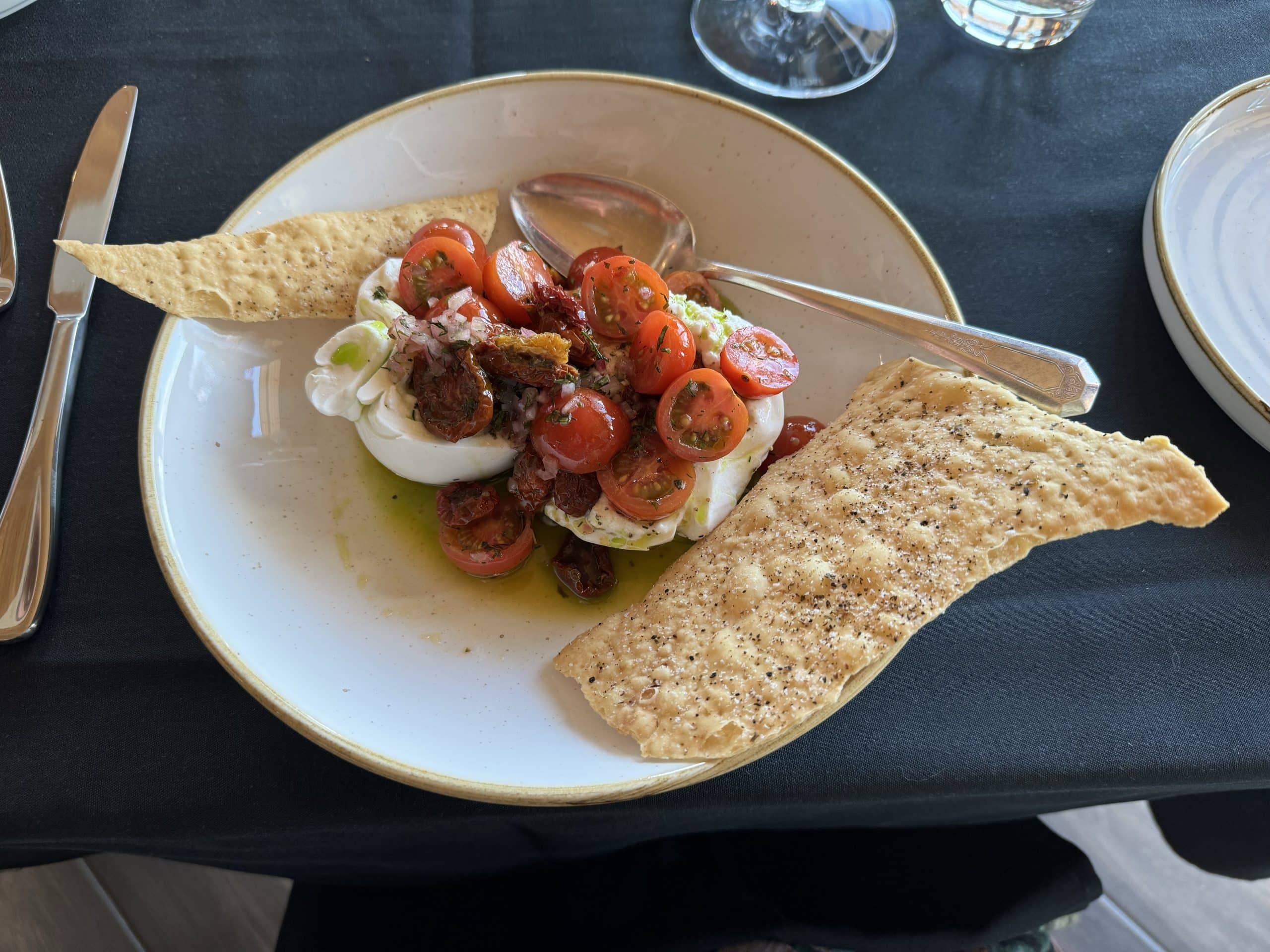 For dinner, we were treated to a delectable and indulgent sneak peek of potential menu selections that Chef Bell was serving to a senior management team for their input. For each course, he told us from where the food was sourced and anecdotes about the providers.