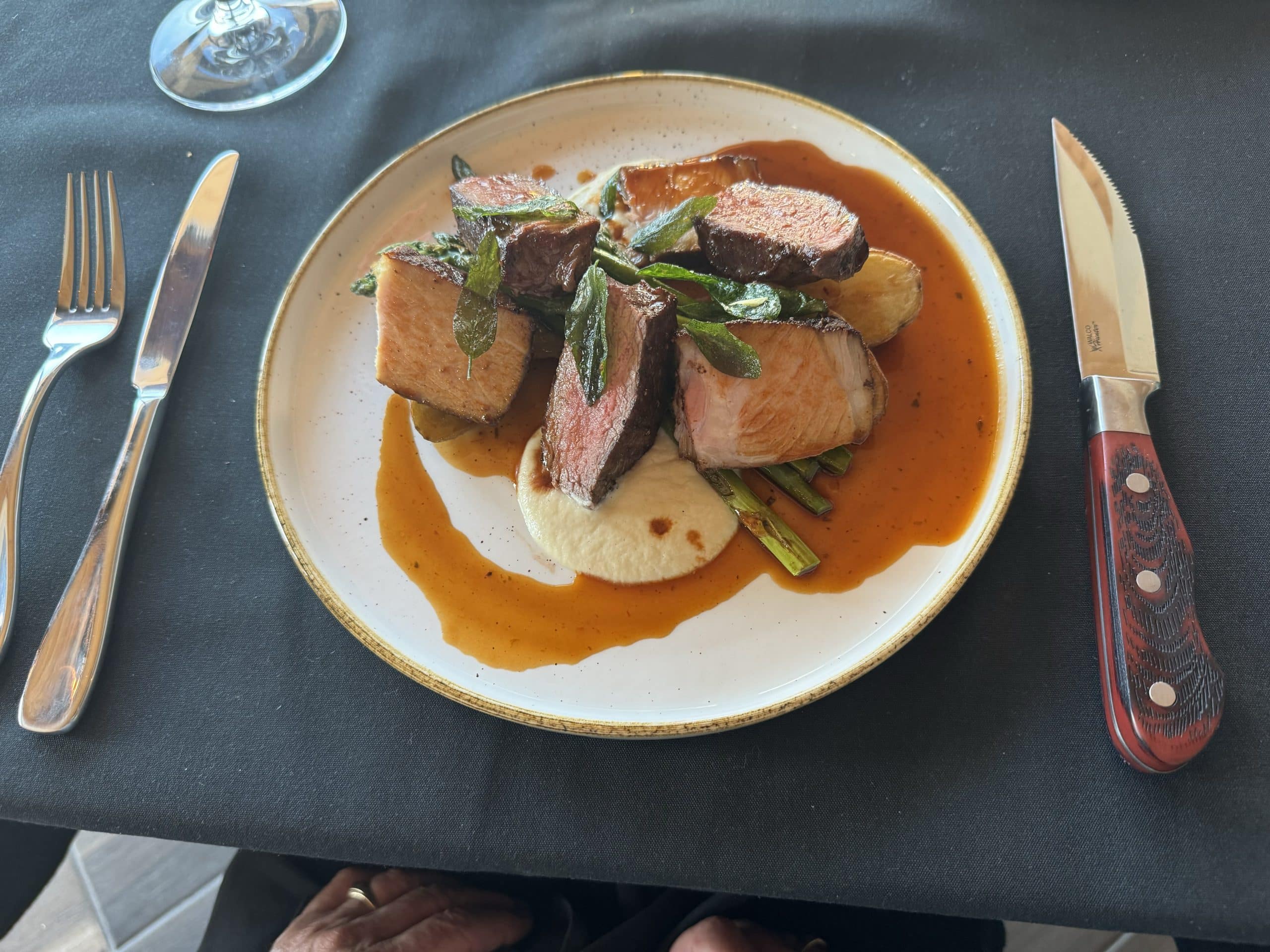 Canter Rogue Reserve 2021 from the District Wine Village of Oliver, BC was a luscious pairing suggested and it was fitting for the ranch and BC local theme. (“CANTER: A HORSE’S GAIT WITH THREE DISTINCT BEATS AND A WINERY WITH THREE FOUNDING FAMILIES.”) I imagine as the food menu embraces BC products, the bar menu will evolve to shine the light on BC beverages.