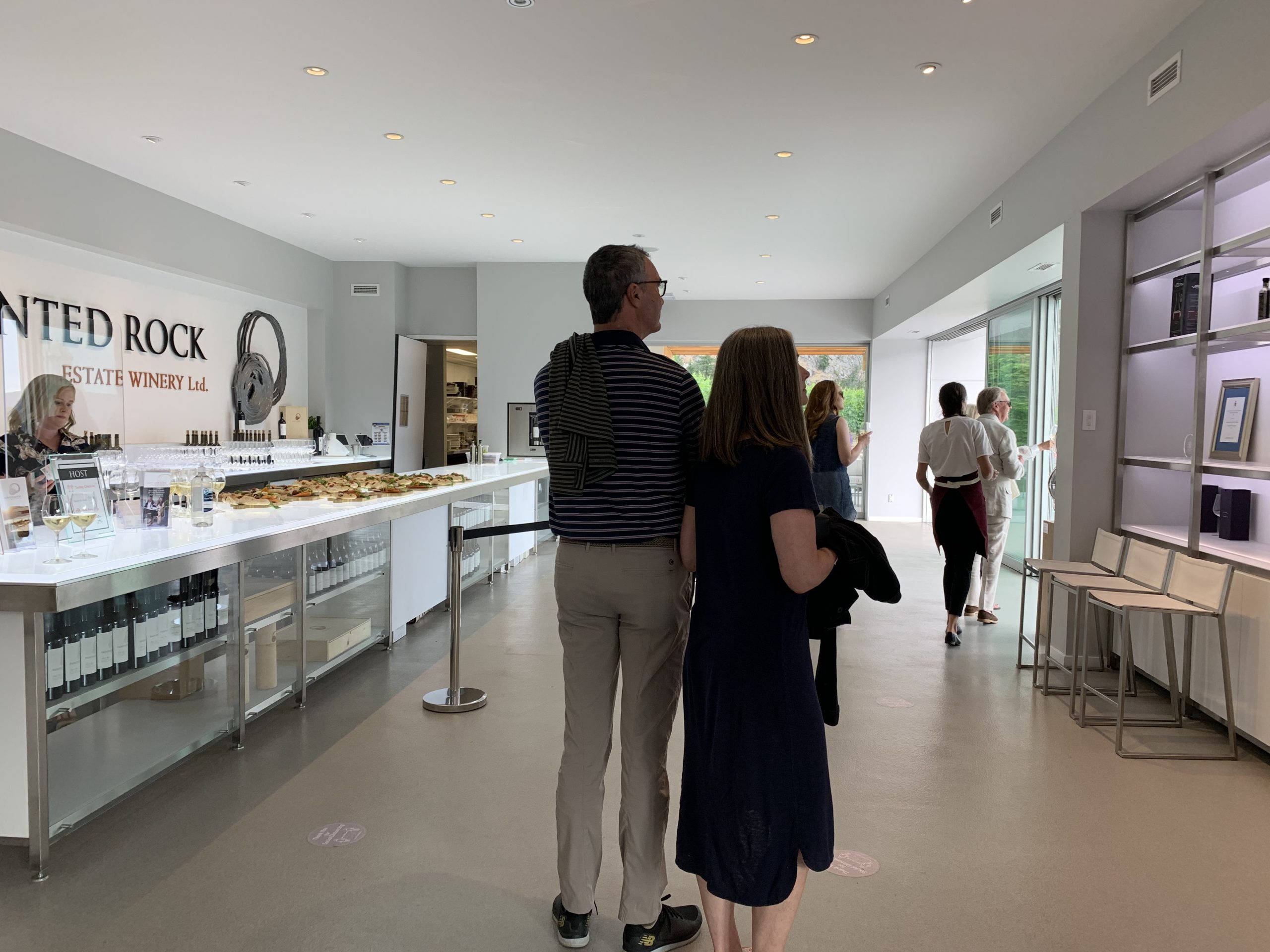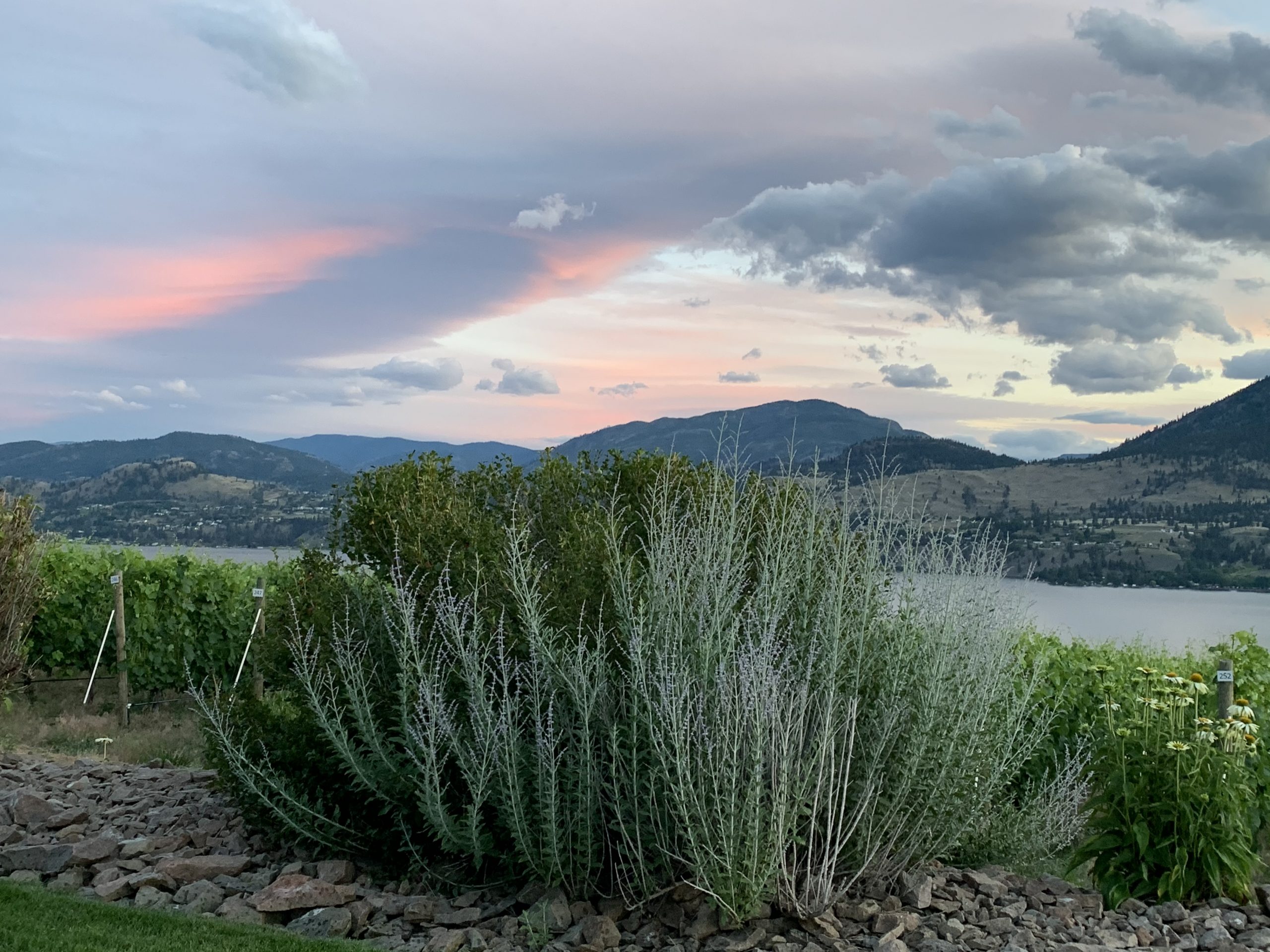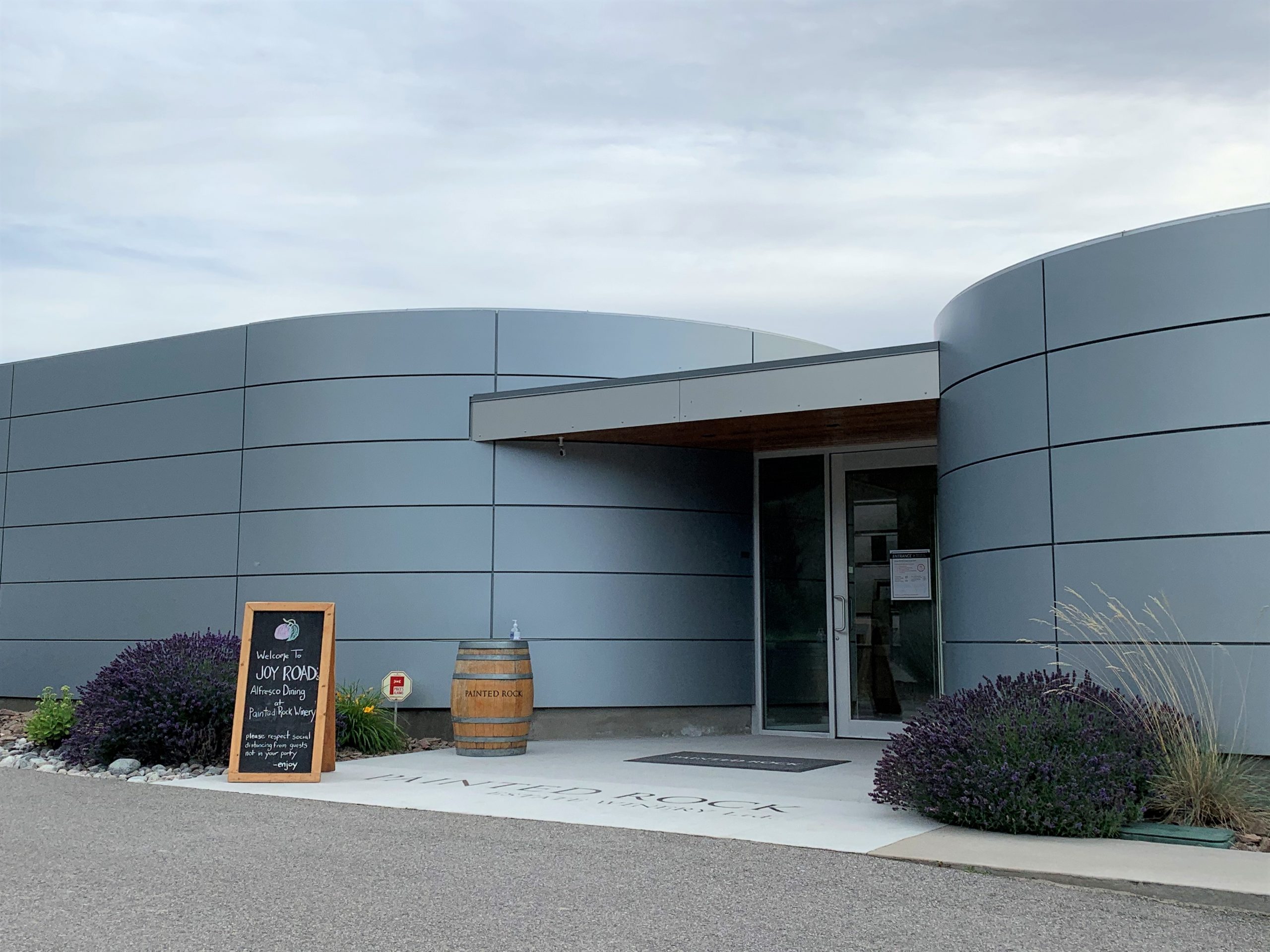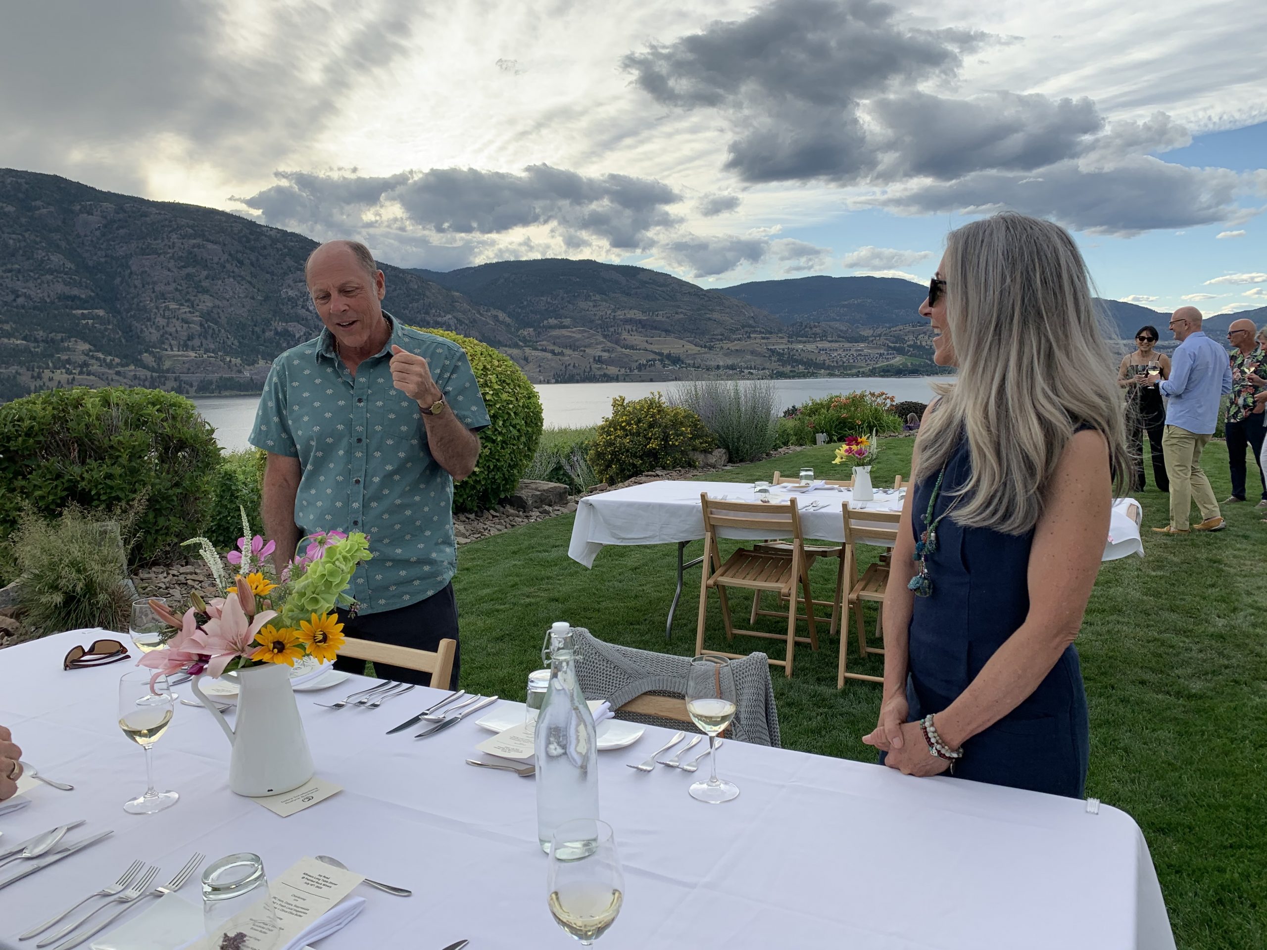 When safe to do so, JRC reconfigured its long table gatherings to fit within all the Covid-19 special protocols from Interior Health and WorkSafe BC. Guests booked ahead for open air dining seated in groups of six maximum set at least six feet apart from other parties. These Alfresco Dinners were offered in numerous locations. With our good friends Deb and Kevin Schellenberg from West Kelowna, we selected one held at Painted Rock Estate Winery.