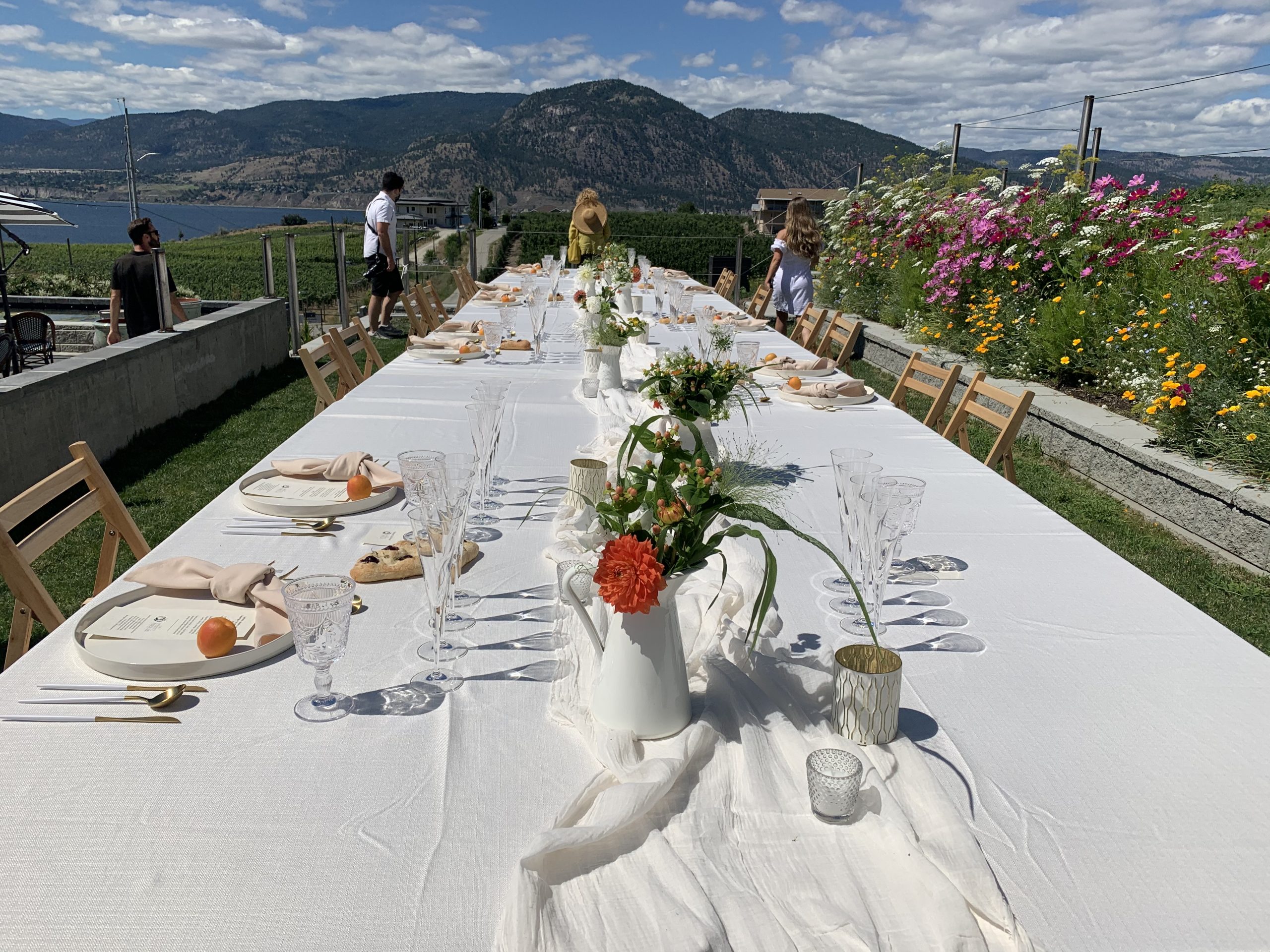 I also was privileged to attend the media launch of La Petite Abeille Cider and JRC’s Alfresco Dining Series at The Blue Bee Orchard. In the picturesque setting on the Naramata Bench with Okanagan Lake shimmering in the vista, we enjoyed a private cider tasting, tour of Blue Bee’s working orchard and Plot Twist Farms that culminated with an exquisite plated lunch.