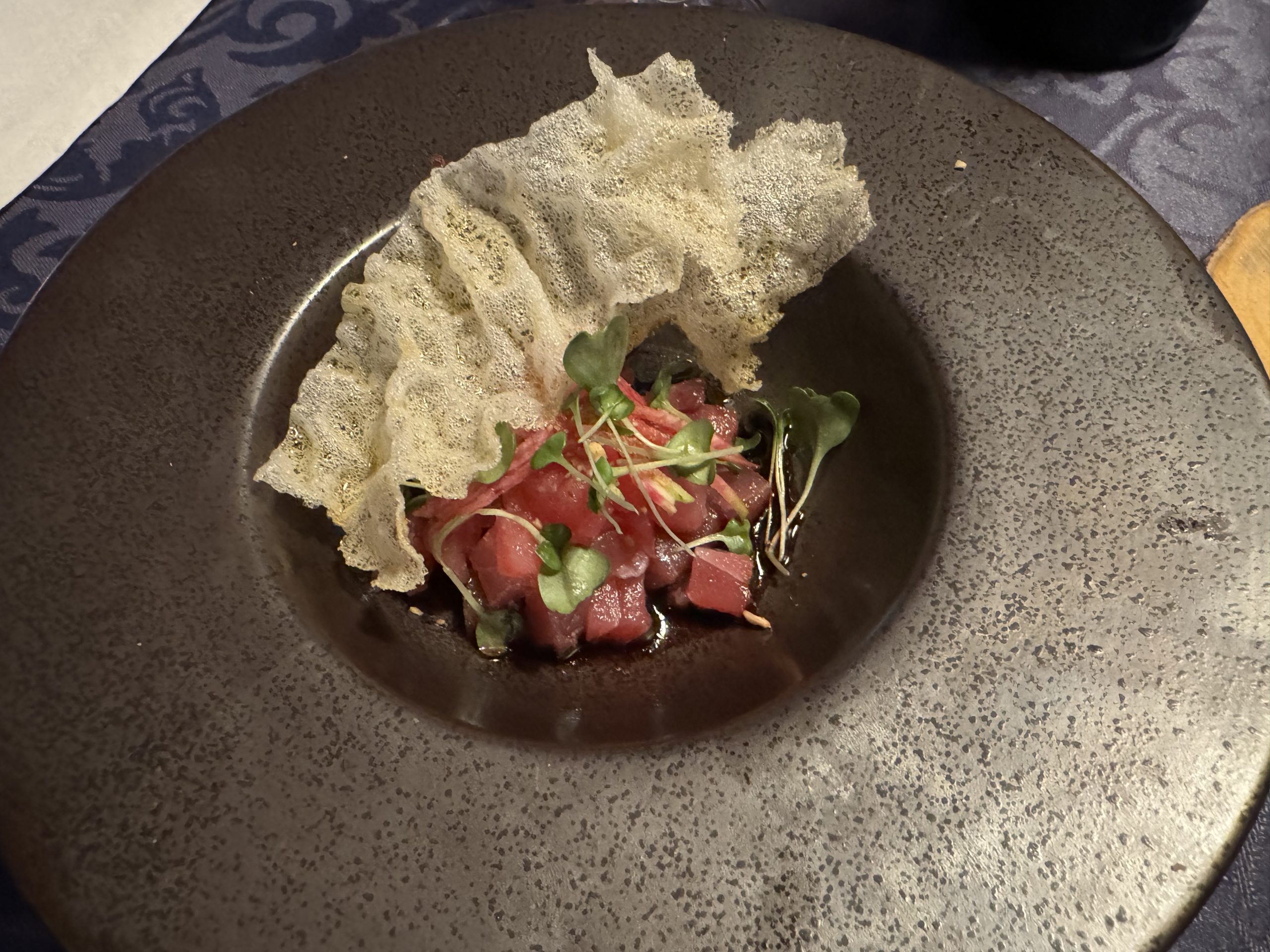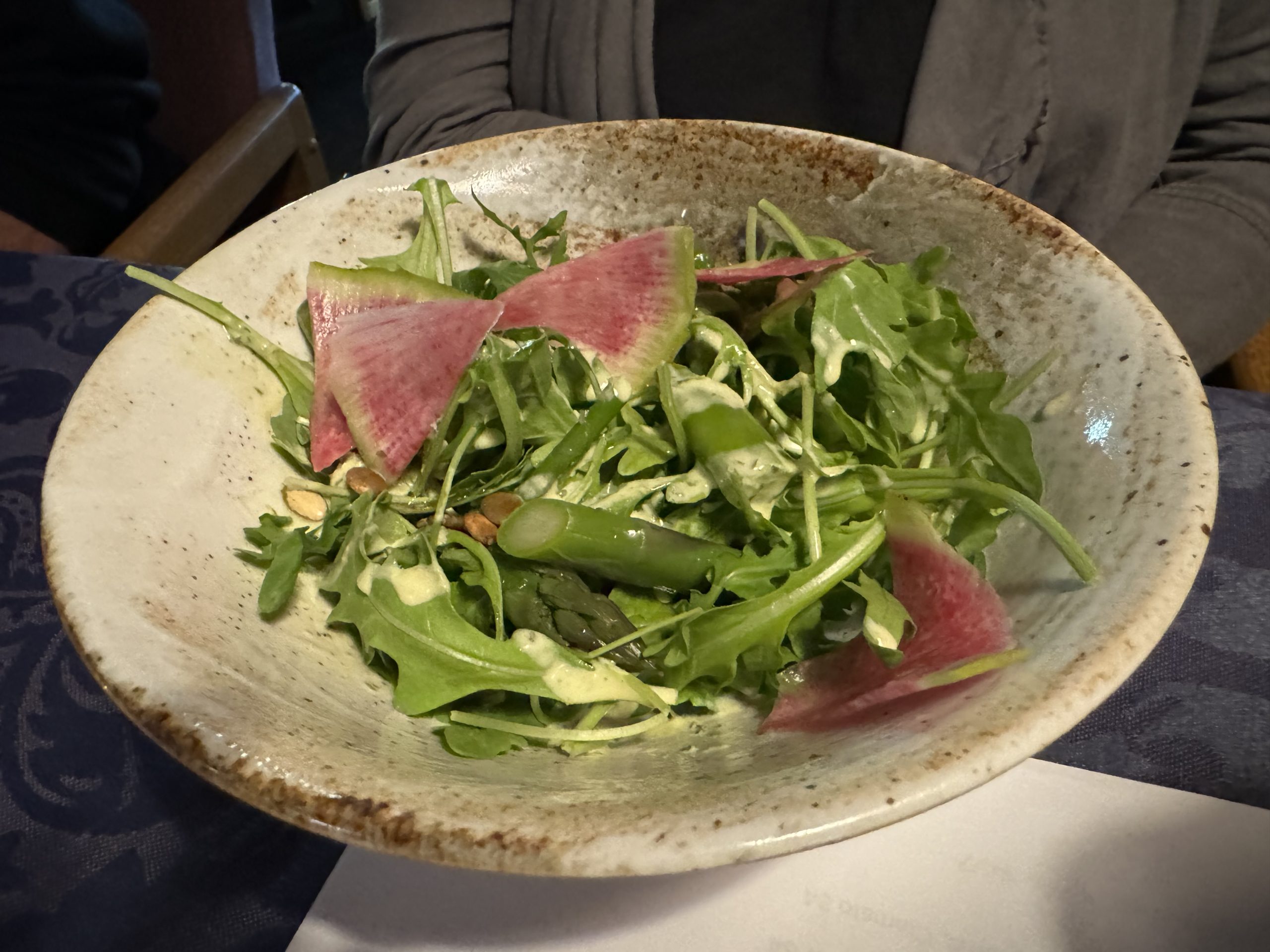 While we hadn’t dined at the music venue since his arrival, we were confident given meals we had enjoyed at Liquidity Bistro in his tenure there. I ordered the Chef Curated 3 Course Menu and others in our group selected to try out various options from the a la carte menu. We were pleased the Drink Menu offers local beer, cider, and wine selections. We selected the Three Sisters Winery Gamay Noir knowing it would be versatile in the food pairings.