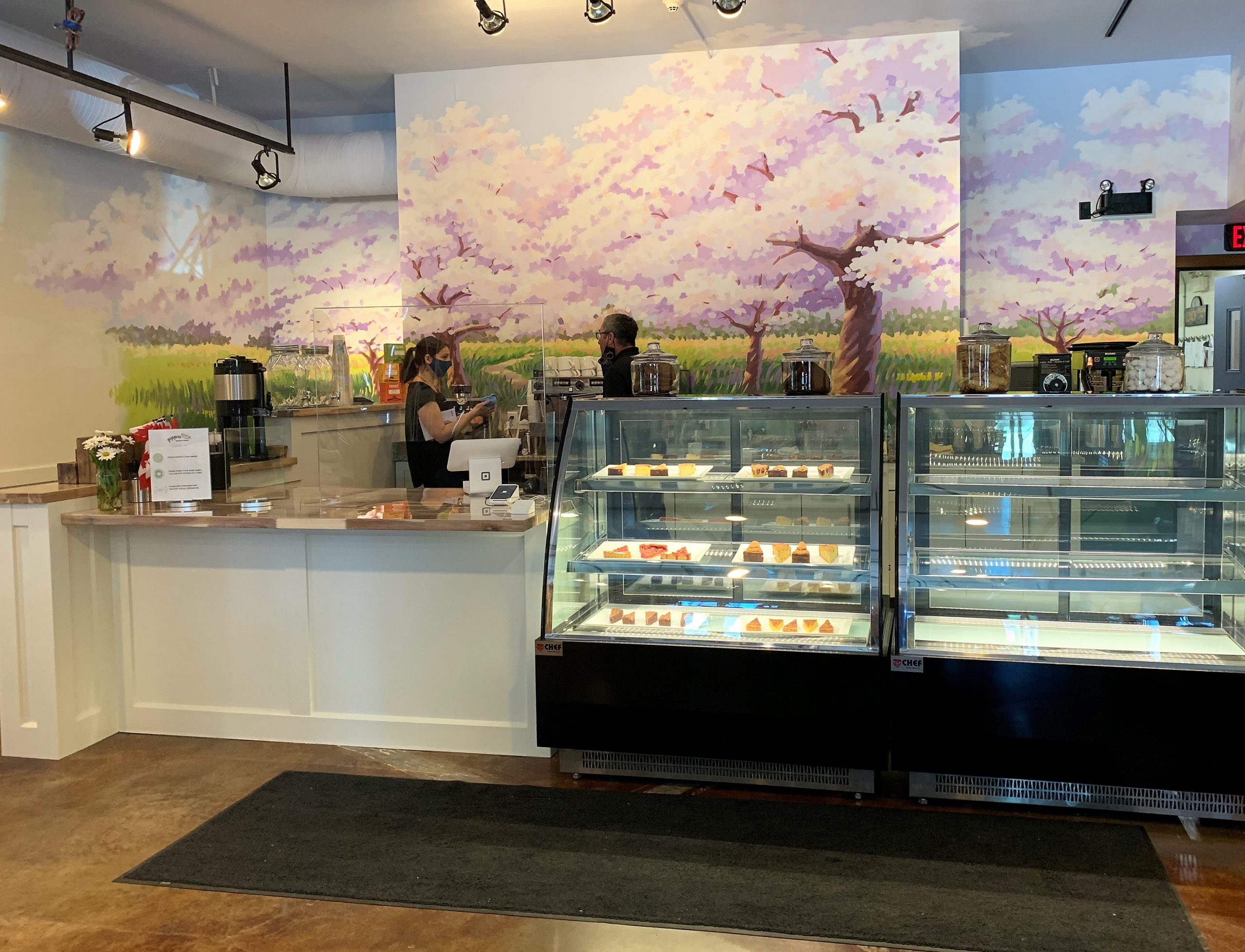Renamed Pippin Market & Bistro, the indoor and patio dining areas are bright and inviting. As you step into the room, you can almost smell the fragrance as if walking in a blossoming orchard thanks to a stunning orchard mural.