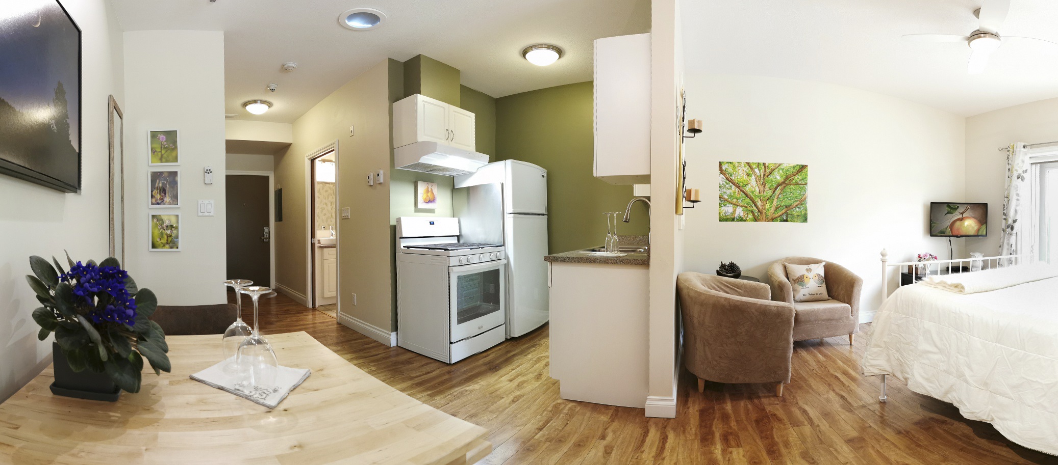 Thoughtfully decorated, rooms feature mountain views, kitchenettes, private bathrooms, flat screen televisions, air conditioning, blackout curtains, luxurious linens and complimentary toiletries.