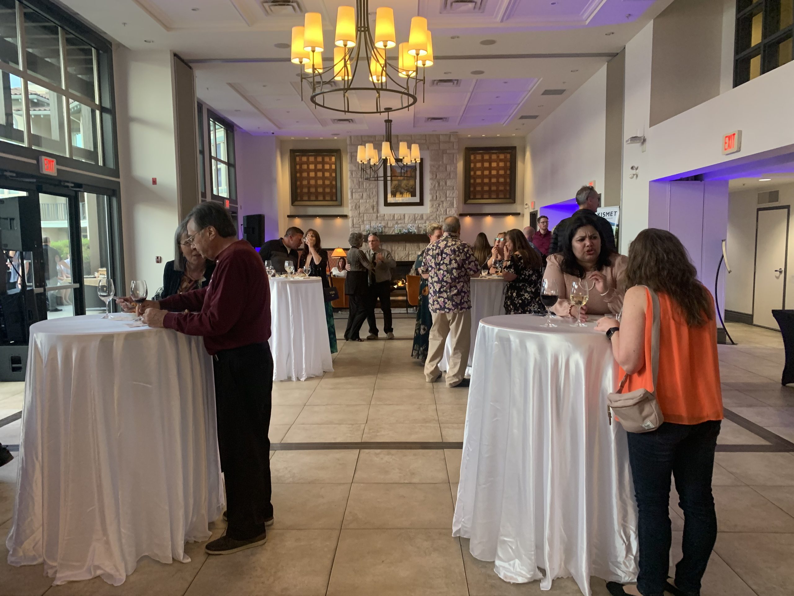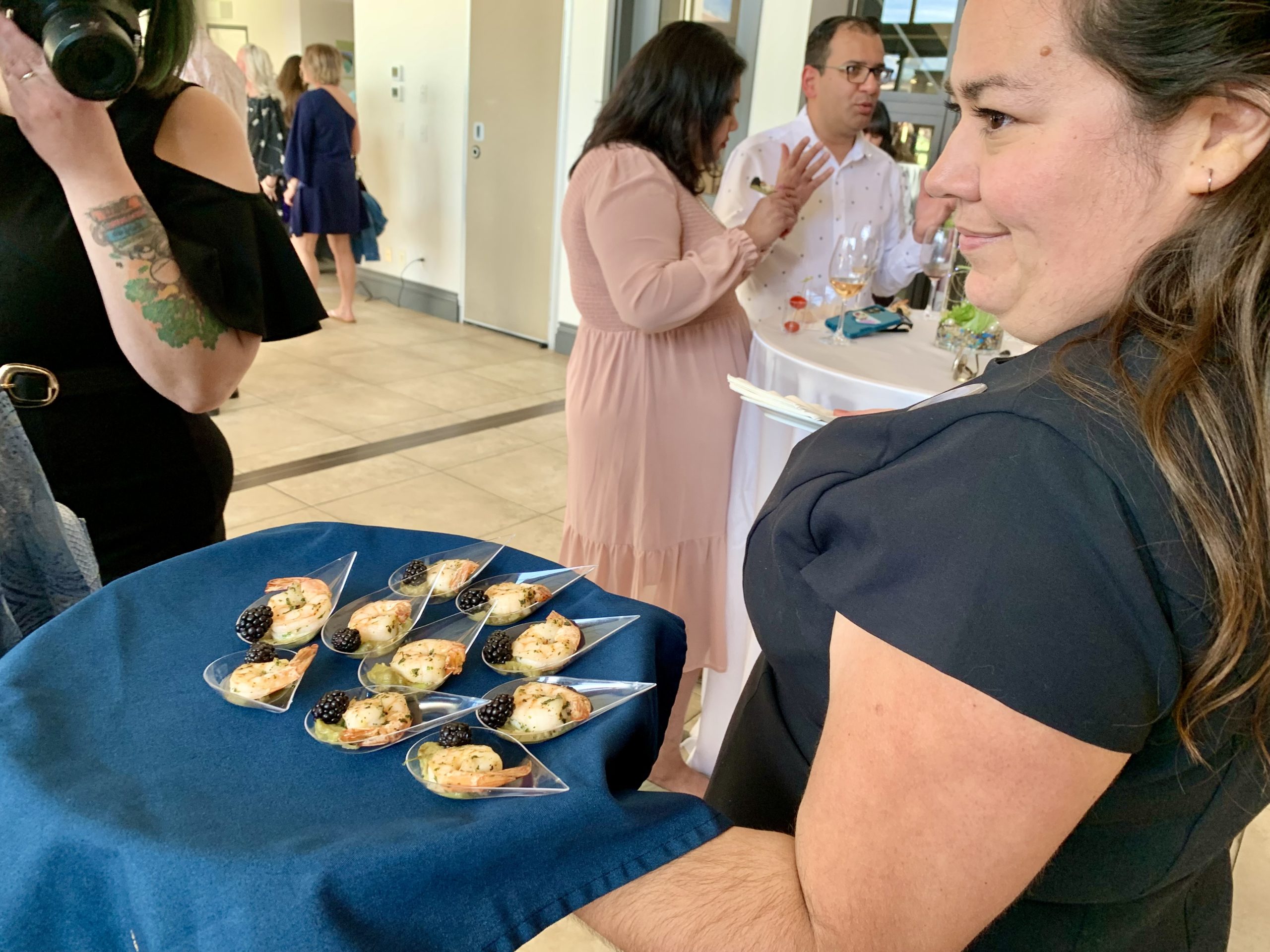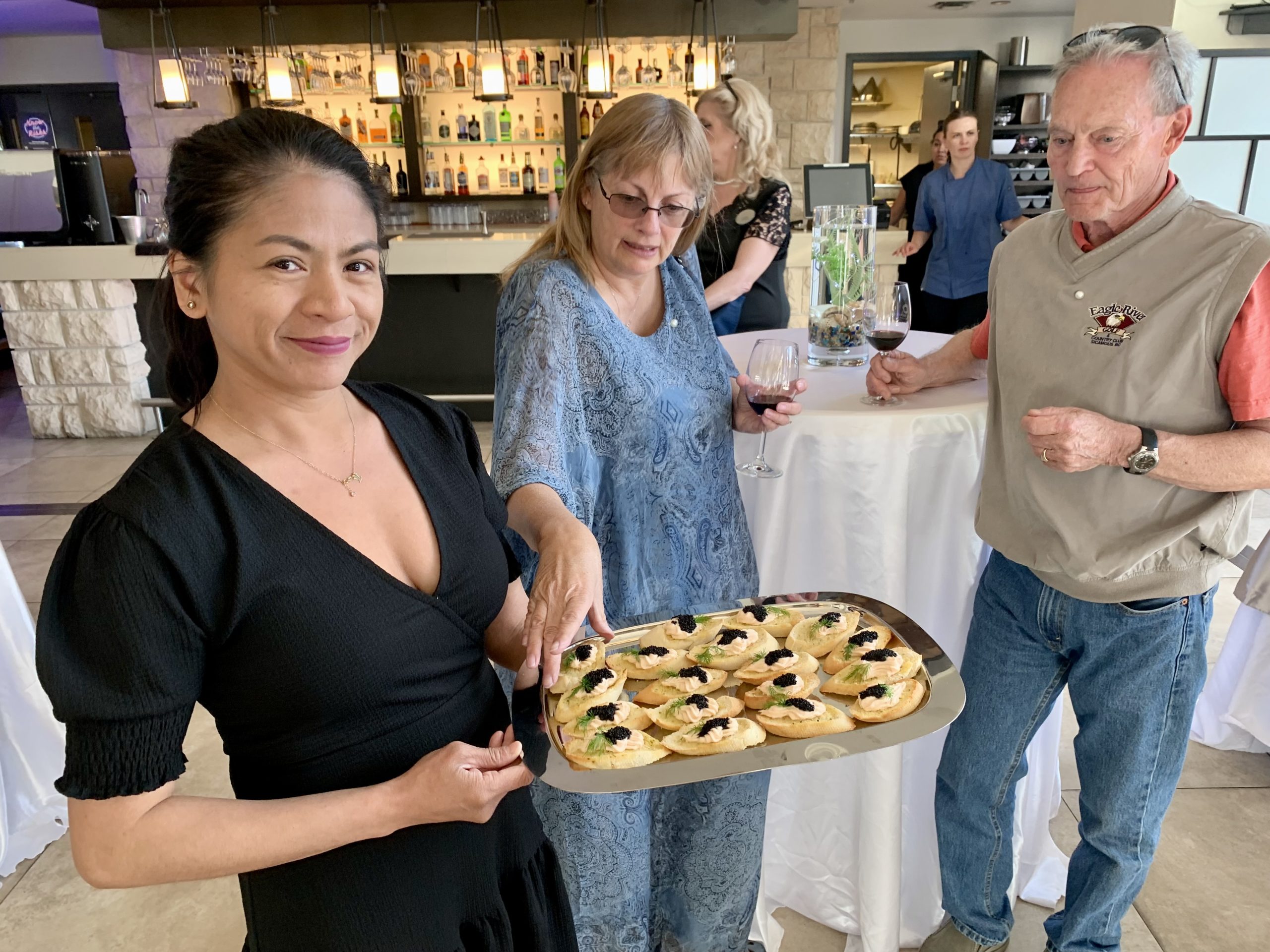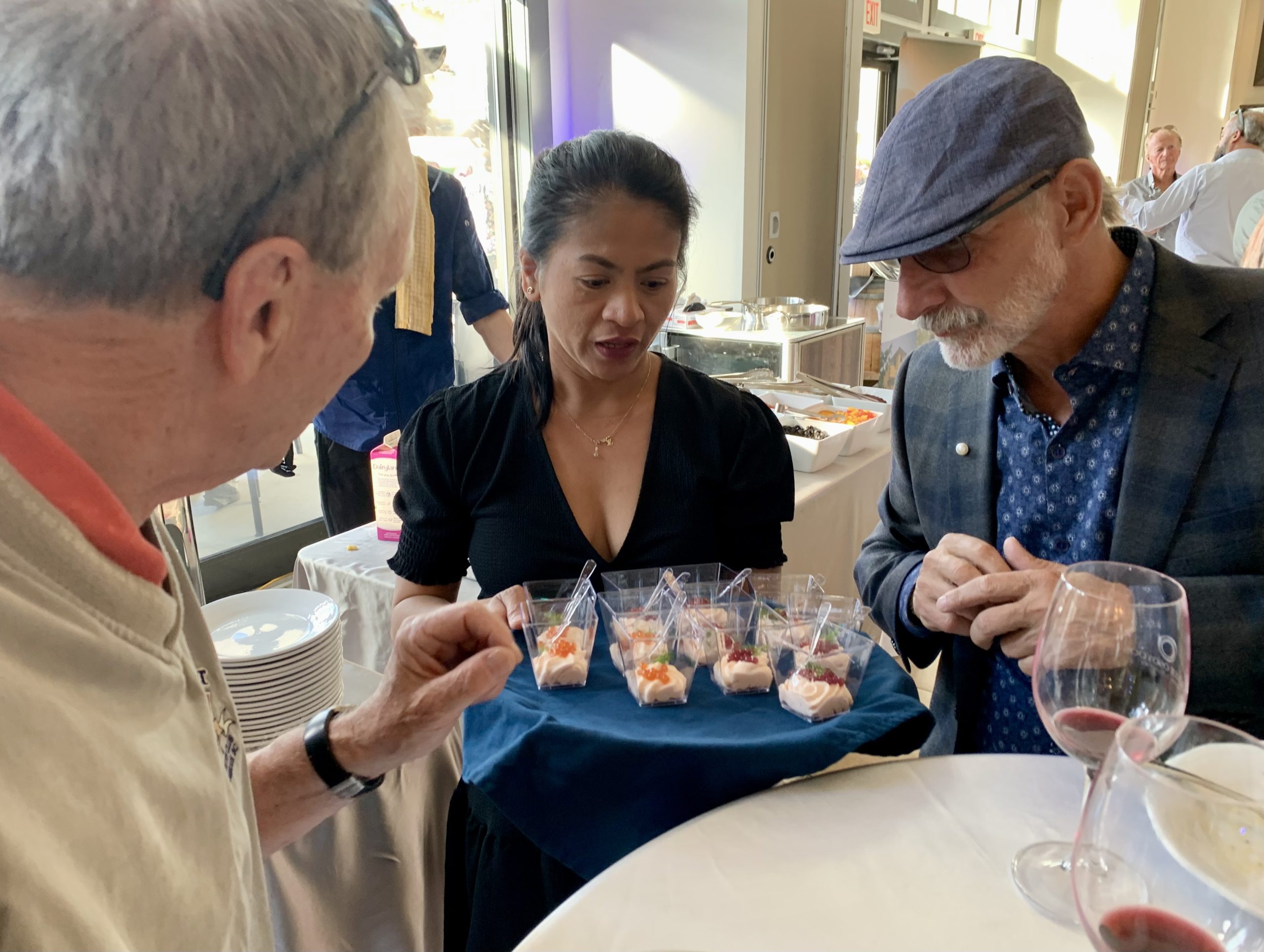 We could wander indoors and outdoors exploring the local wineries’ booths, enjoying appetizers prepared and presented by Walnut Beach Chef Bilel Lasmar and his team while enjoying local entertainment throughout the evening.