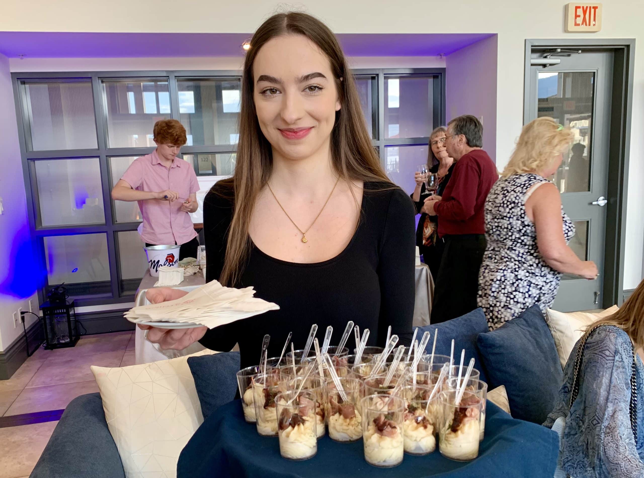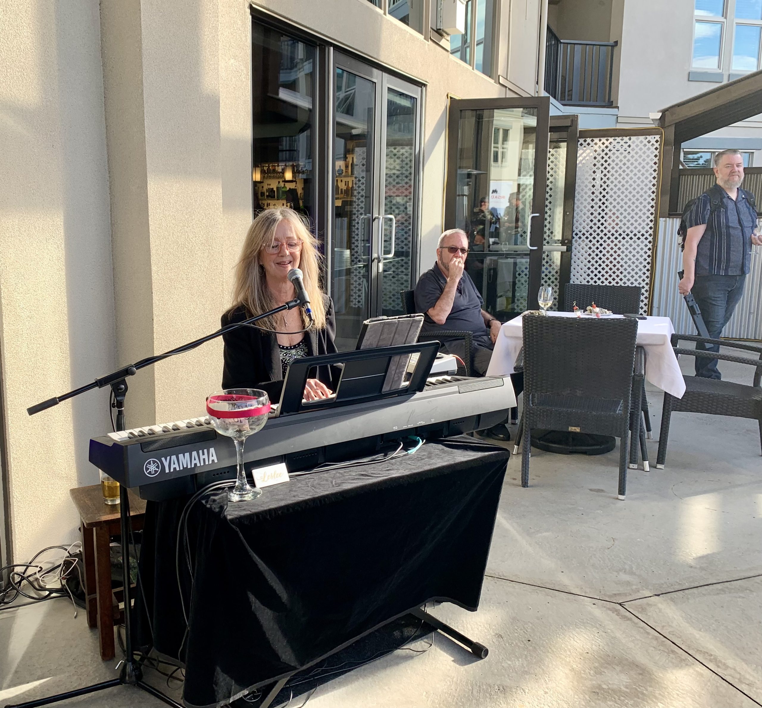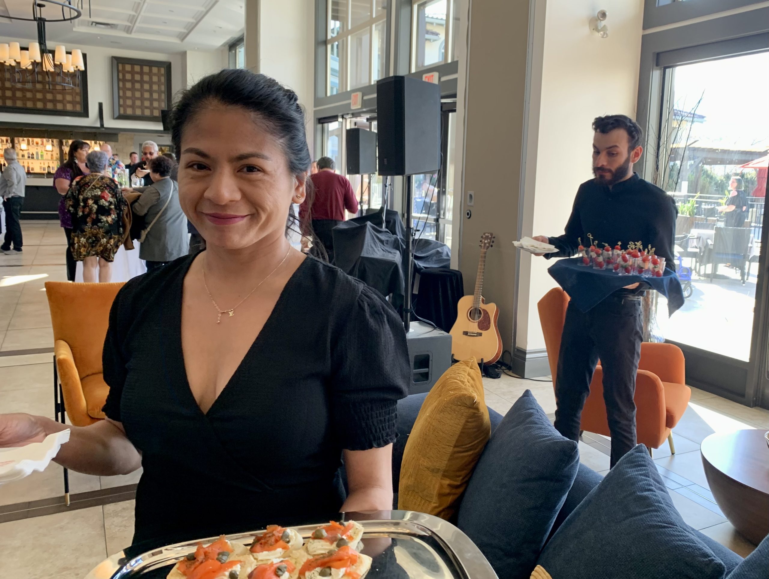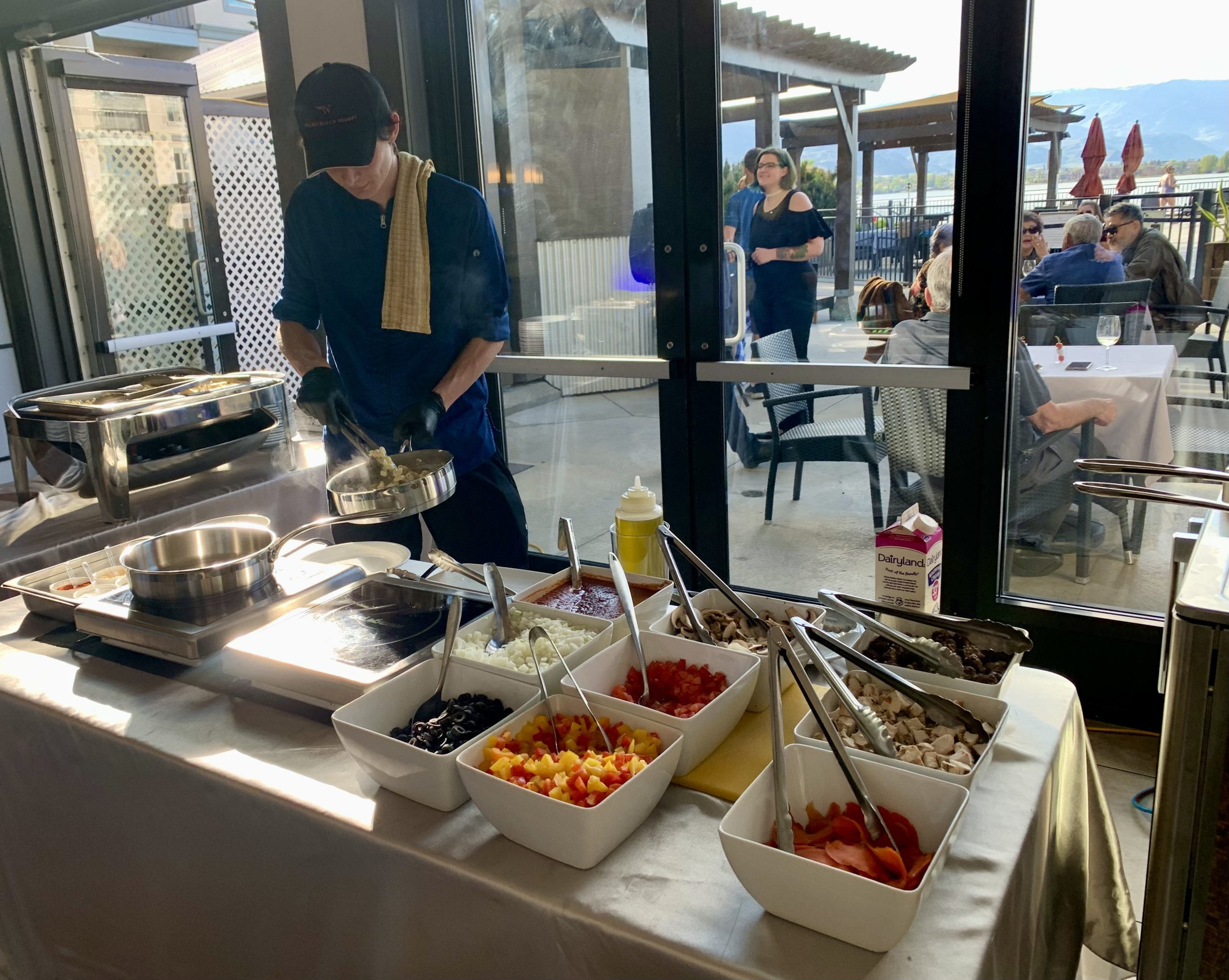 We could wander indoors and outdoors exploring the local wineries’ booths, enjoying appetizers prepared and presented by Walnut Beach Chef Bilel Lasmar and his team while enjoying local entertainment throughout the evening.