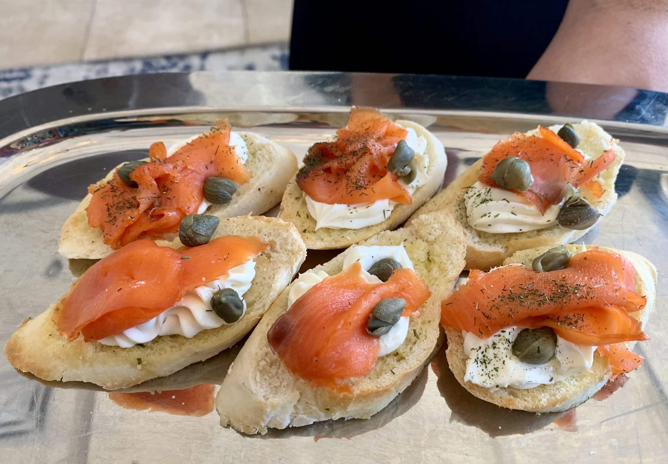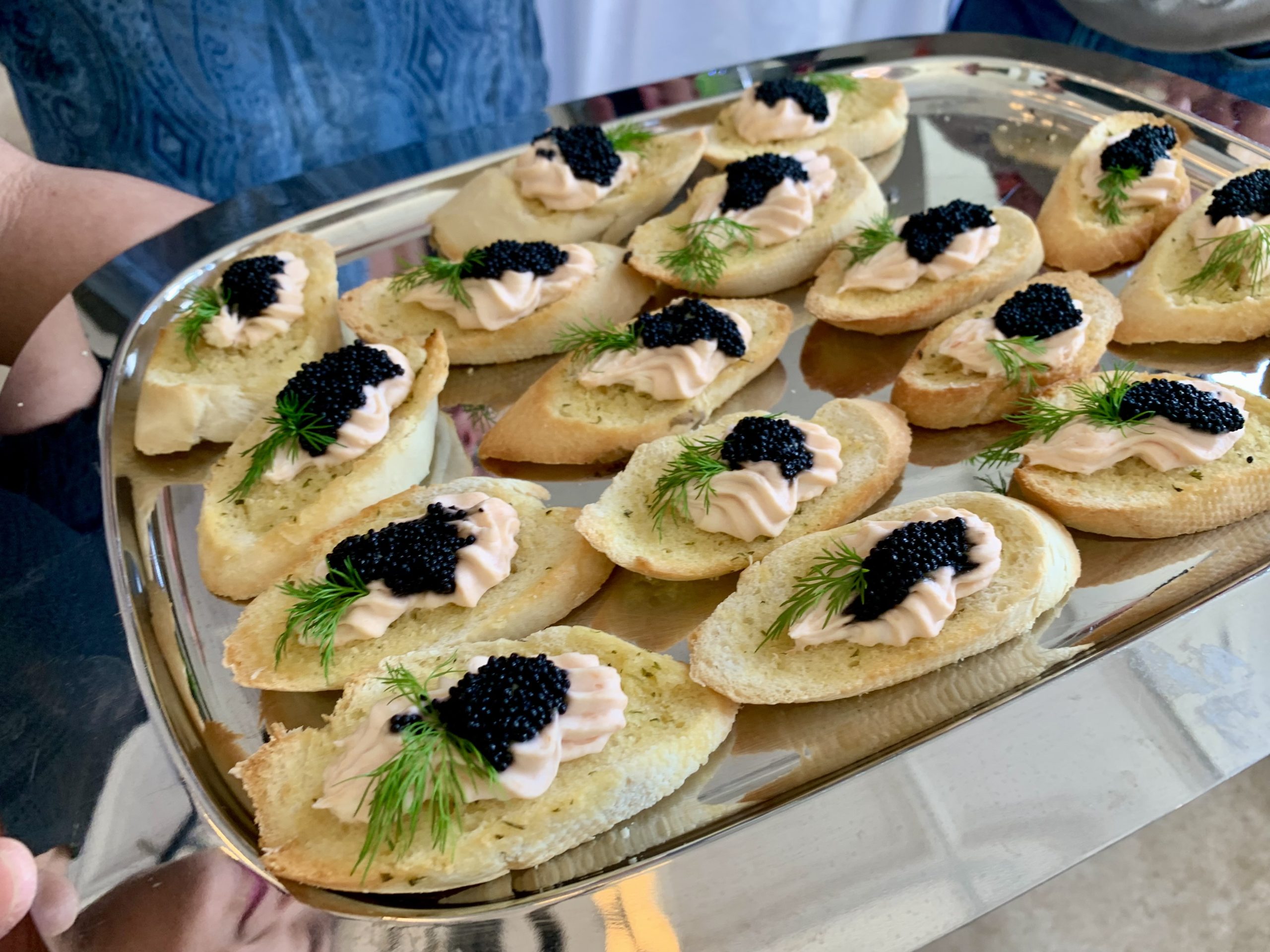 The appetizers were an array of tempting small bites such as smoked salmon, shrimp, bruschetta, caviar, and steak bites on mashed potatoes. The pasta station was the busiest corner as you pondered your choices like smoked salmon, shrimp, ham, and vegetables with your preferred pasta for the chef to prepare under your watchful eye.
