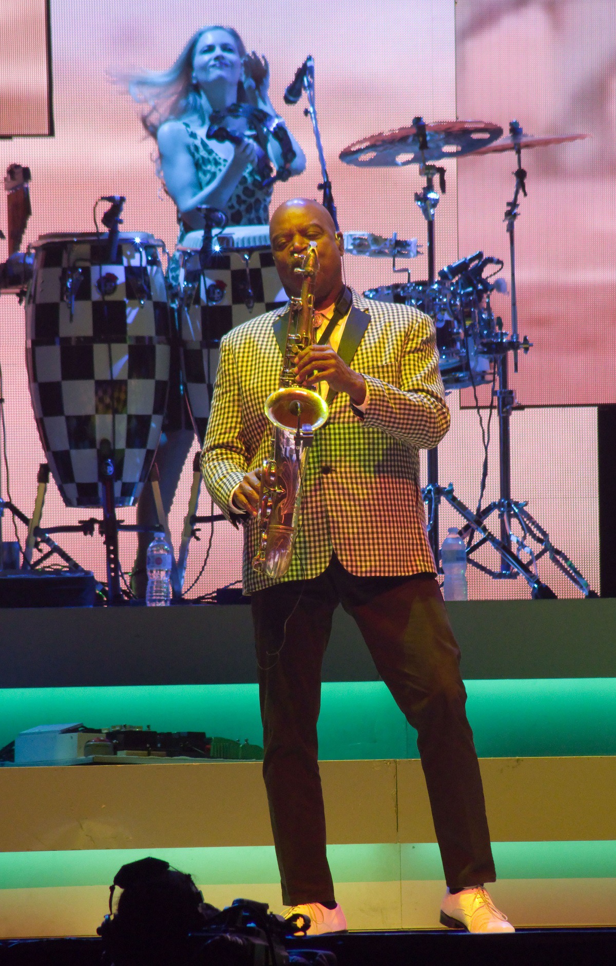 It’s challenging to pick a standout song of the evening. The consummate performer, he packed the two hour long concert with career spanning chart-toppers and performed each with gusto. All in spite of having to sometimes rest on a stylish white leather stool because of his foot. Still he danced, even thrilled the audience with his signature bum wiggle. When he sat, his three female backing singers and two female multi-instrumentalists moved for him. They were incredibly versatile. They did everything from step-dancing to high-kicking. Their version of the Tina Turner’s Nut Bush was fabulous.