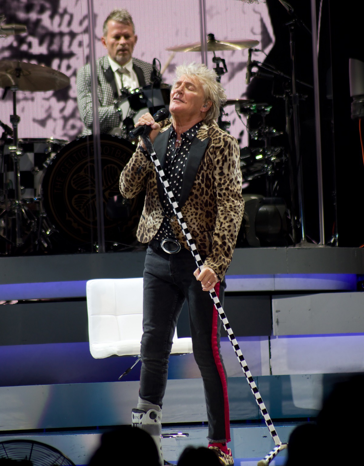 Stewart’s amazing band was gorgeously dressed in 50’s style suits. The three female backing singers and two female multi-instrumentalists wore dresses in his signature leopard skin. It was an energetic beginning that became even more charged when Sir Rod took to the stage and began singing his 1984 hit Infatuation.