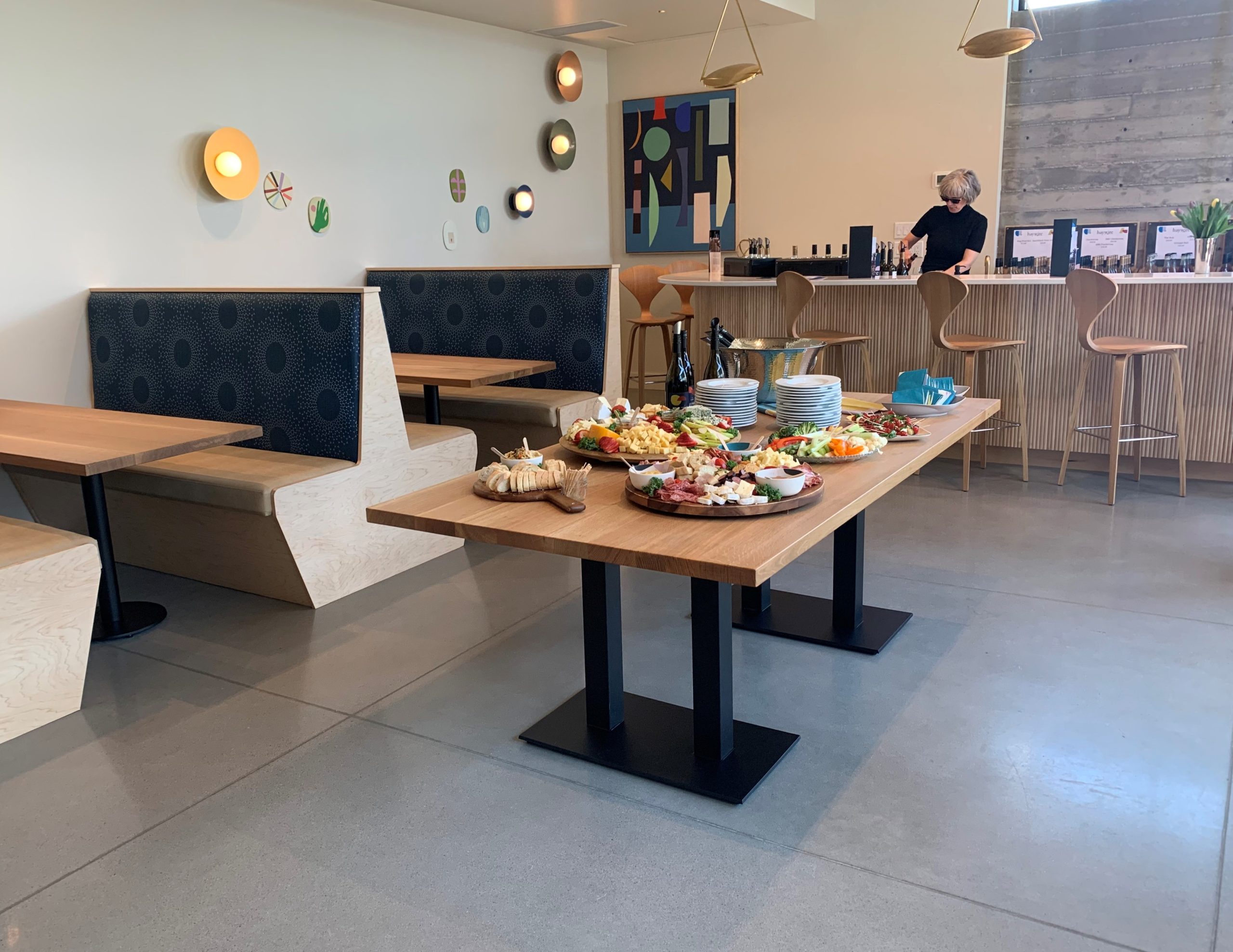 The well-crafted wines sport new labels and packaging that pulls from the stunning mural artwork onsite by Vancouver artist Scott Sueme. The new 1,500-square-foot modern tasting lounge also celebrates the mural and displays a few of his original pieces. Adjacent to the crush pad and wine cellar, the winery lounge offers contemporary comfort and ringside seats to the winemaking action.